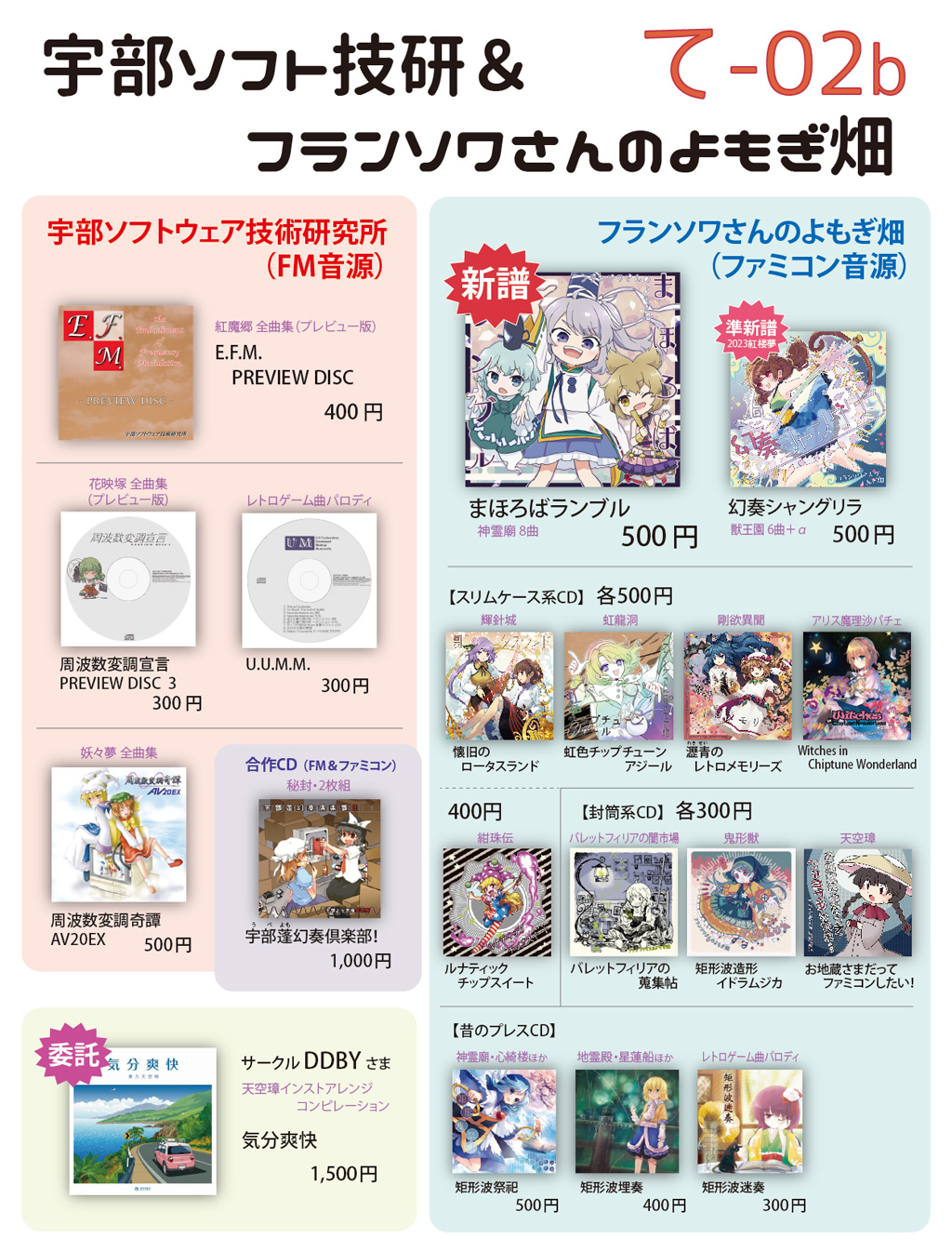 宇部よもぎ畑研究所は、第二十一回 博麗神社例大祭に「宇部ソフト技研&フランソワさんのよもぎ畑」としてサークル参加いたします。(スペース:て-02b)